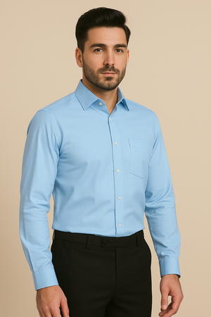 Linen Sky Blue Plain Formal Shirt ,Pure Cotton